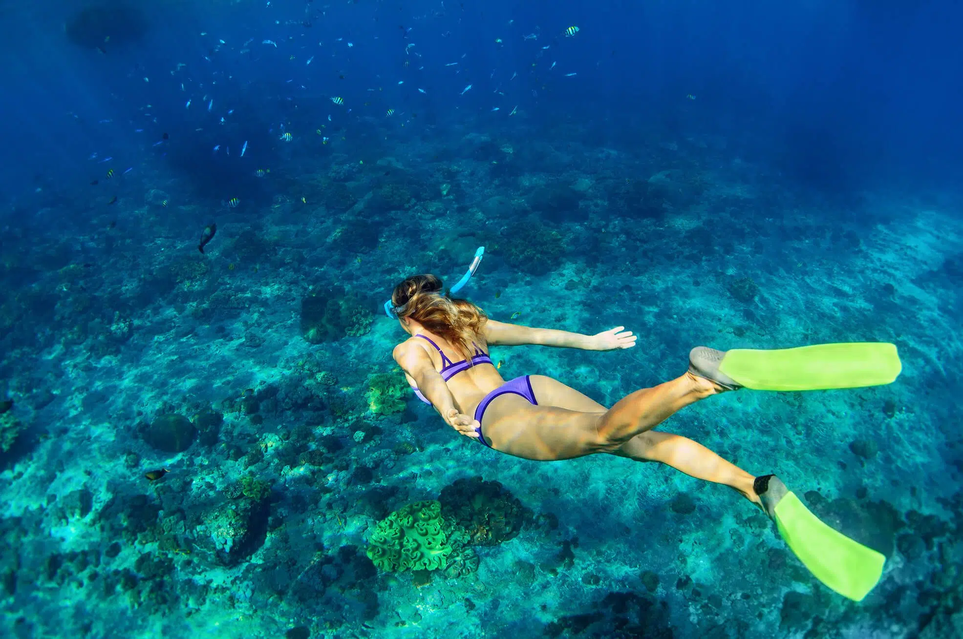 The colour saturation dial is on full here. A national marine park and UNESCO world heritage site, its crystal-clear water (visibility up to 50m and year-round water temperature of 26°C) is the most dazzling turquoise, it rocks rich gunmetal, and its jungle is the colour of emeralds. With exciting dives at all levels, you can snorkel and scuba with a Crayola box of tropical fish, spotted rays, turtles, dolphins, and reef sharks.